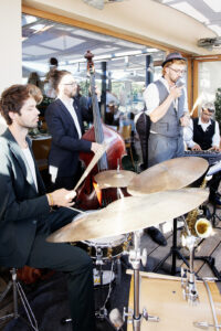 Ihr seid auf der Suche nach einer Band die stilvolle Atmosphäre und mitreißende Stimmung liefern kann? Wir verstehen es, Eure Hochzeit musikalisch zu gestalten. Dezent im Hintergrund oder swingend auf der Tanzfläche – je nachdem, was im Augenblick gefragt ist – wir sind dafür bereit. Ob Agape, Trauung, Hintergrundmusik oder Tanzmusik, aufgrund des Setups und unseres Fingerspitzengefühls umrahmen wir in jeder Lautstärke Euren ganz besonderen Tag.Jedes Event ist individuell, daher ist auch unser Programm sehr flexibel und wird eigens für Ihr Event angepasst. Es ist für alle Gäste etwas dabei, vom tanzbaren Swing, zum lebhaften Groove, bis zur wunderschönen Ballade.